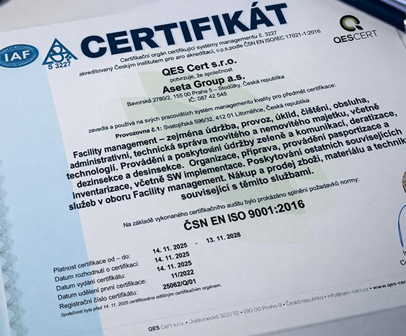 Certifikujeme interní procesy, skupinu vedeme dle zásad etiky, pravidelně prokazujeme splnění základní a profesní způsobilosti.